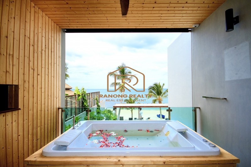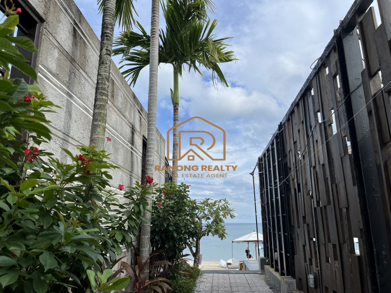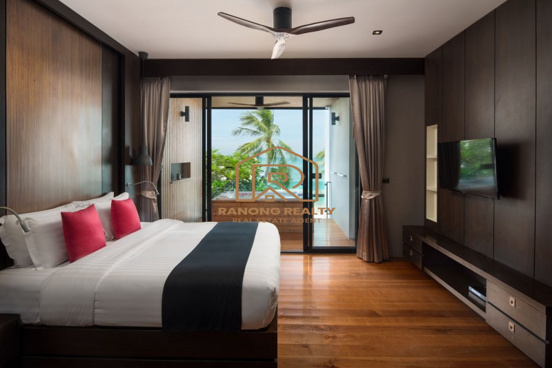 5 unit fully furnished luxury private Pool villa on a large white sandy beach for sale in Samui