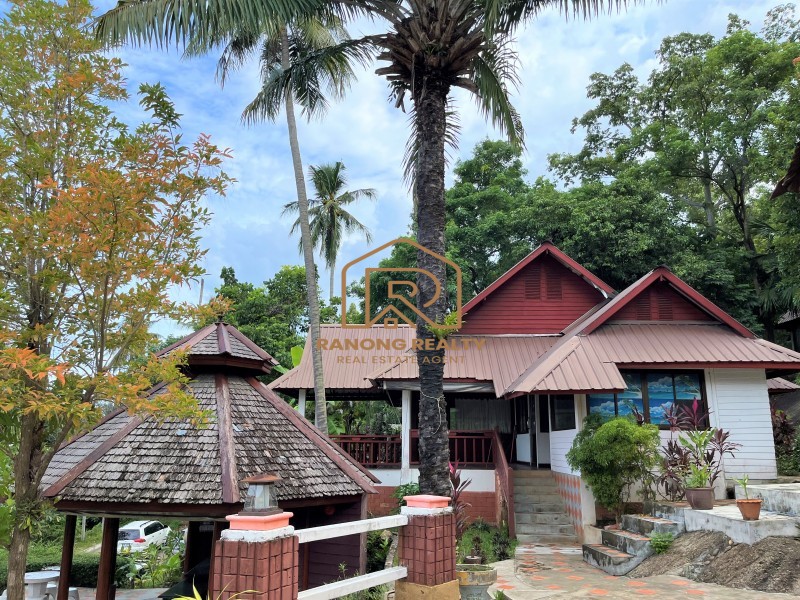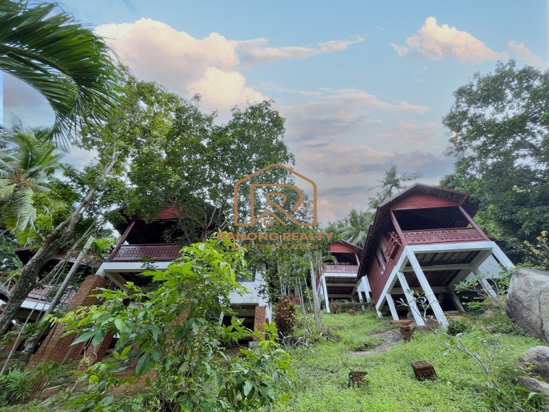 6 Rai hillside land with beautiful sea views comes with the 30-building resort business. Thai-style resorts surrounded by beautiful gardens provide lush and shady greenery. It is only 5 minutes to the white sand beach. The resort is in a prime location and is surrounded by a restaurant, bar, and convenience store. The property is being sold freehold and comes with a land title deed (chanote). All of the buildings need renovation. The east-facing position also allows for the most amazing sunrises. The land has two entrances next to the main road. There is a large parking area for cars and buses. The lobby is open and has guest seating and a reception desk. Counter tour building is next to two large swimming pools in the middle of the land. The restaurant can accommodate 35–40 people to provide breakfasts and other meals to guests of the resort. The resort including the 5-room type in total 31 room. All equipment and fittings are included with the hotel. Price reduced from 130 MB to 80 MB