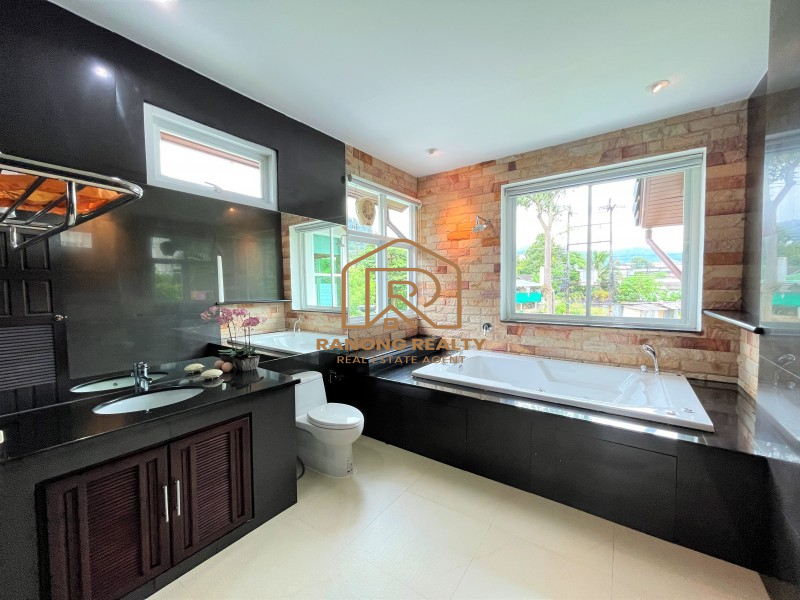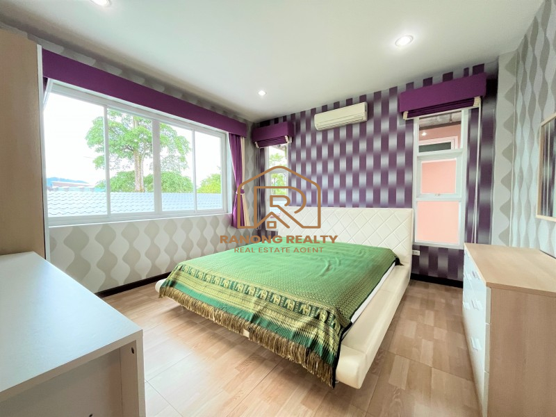 ให้เช่าบ้าน 3 ห้องนอน Sunny & Bright ในกะทู้, ภูเก็ต บ้านตั้งอยู่ในทำเลที่สะดวกระหว่างหาดป่าตองและตัวเมือง ร้านสะดวกซื้อและตลาดสดอยู่ในบริเวณใกล้เคียง ย่านที่ดี บ้านสองชั้นมีพื้นที่นั่งเล่นและรับประทานอาหารที่กว้างขวาง ครัวฝรั่งพร้อมตู้เย็น ไมโครเวฟ และเครื่องครัว มีห้องน้ำ 1 ห้อง และห้องเก็บของใต้บันได บนชั้น 2 มีห้องนอน 3 ห้อง ประกอบด้วยห้องนอนใหญ่ 1 ห้องพร้อมห้องน้ำหลักที่มีอ่างอาบน้ำขนาดใหญ่ ห้องมาตรฐานหนึ่งห้องและห้องนอนอีกห้องพร้อมระเบียงขนาดใหญ่ ห้องแม่บ้านพร้อมห้องน้ำในตัวเชื่อมต่อกับตัวบ้าน น้ำพุไหลเย็นและผ่อนคลาย สระว่ายน้ำโคลีน. ลานขนาดใหญ่สามารถเปลี่ยนเป็นพื้นที่ปิกนิกและปิ้งย่างได้ รถคันหนึ่งจอดในบ้านและอีกคันจอดนอกบ้านสถานที่ใกล้เคียง 2 นาทีถึงมินิบิ๊กซีและ 7-11, 3 นาทีถึงตลาดสด, 5 นาทีถึงโลตัสโกเฟรช, สนามกอล์ฟและสนามเทนนิส, 10 นาทีถึงโรงเรียนนานาชาติขจรเกียรติ, 13 นาทีถึงเซ็นทรัลภูเก็ต, 15 นาทีถึงหาดป่าตอง , โรงพยาบาลกรุงเทพภูเก็ตและโรงเรียนนานาชาติบริติช, 20 นาทีถึงโบ๊ทลากูน, และ 45 นาทีถึงสนามบินนานาชาติภูเก็ต