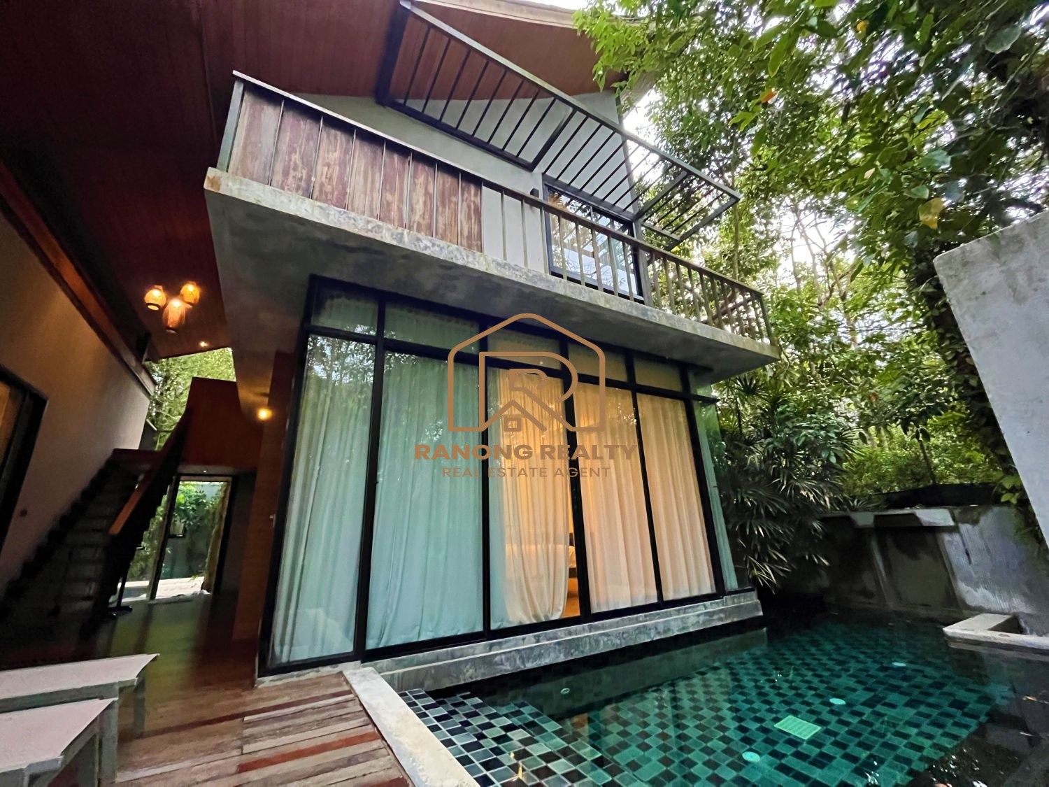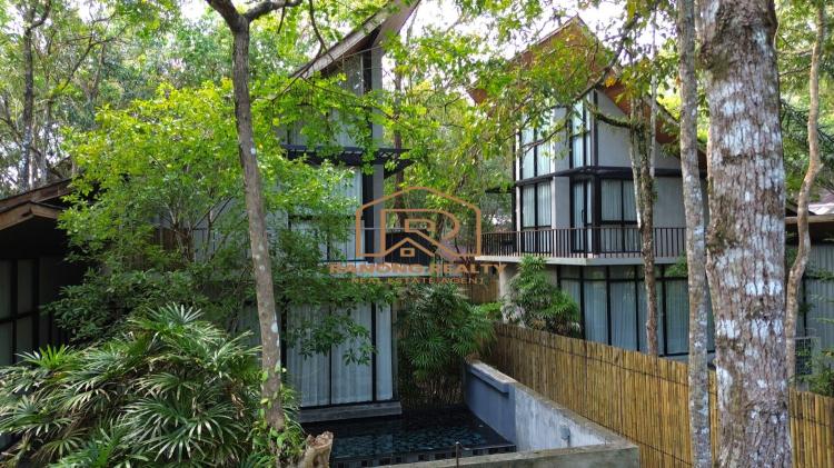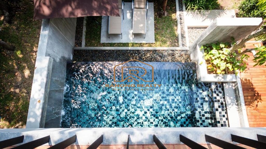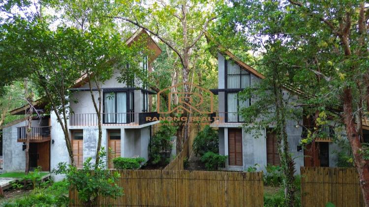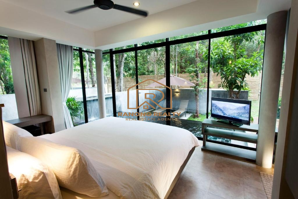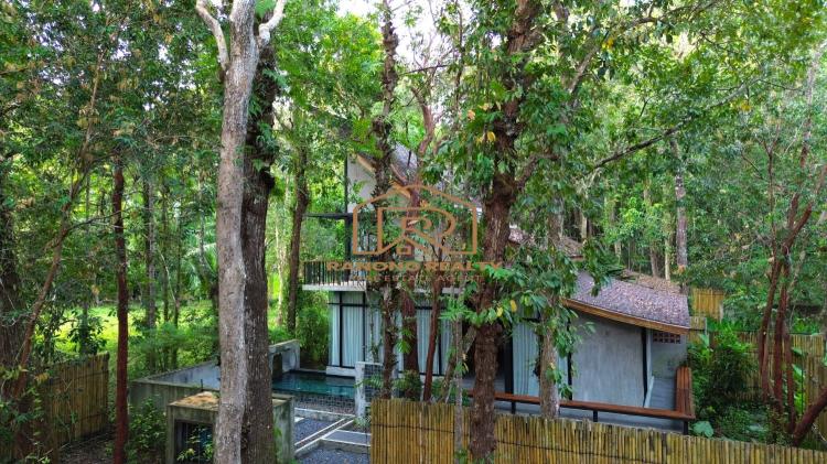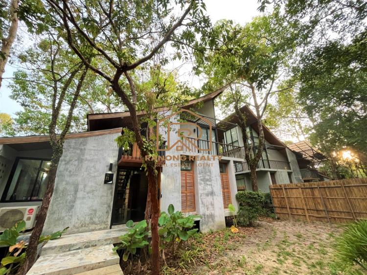 How wonderful it is to live in the forest in the amazing climate of Krabi! The unique, elegant villa is in the lush tropical gardens and nearby the beach, only 200 meters away. Private and quiet area. Each duplex 8-villa unit features a fully furnished two-bedroom with an en suite bathroom, a spacious lounge area, and an outdoor dining area. The villa's fully sliding glass walls allow you to turn your home into an outdoor terrace in minutes. The fully furnished villa is situated on 5,314.4 square meters and features a private swimming pool measuring 2.5 x 6 meters, as well as sunbathing areas for each. There is a terrace in front of the room for relaxing. The amazing project for sale has 8 villas with a usage area of 195 sq. m. each.