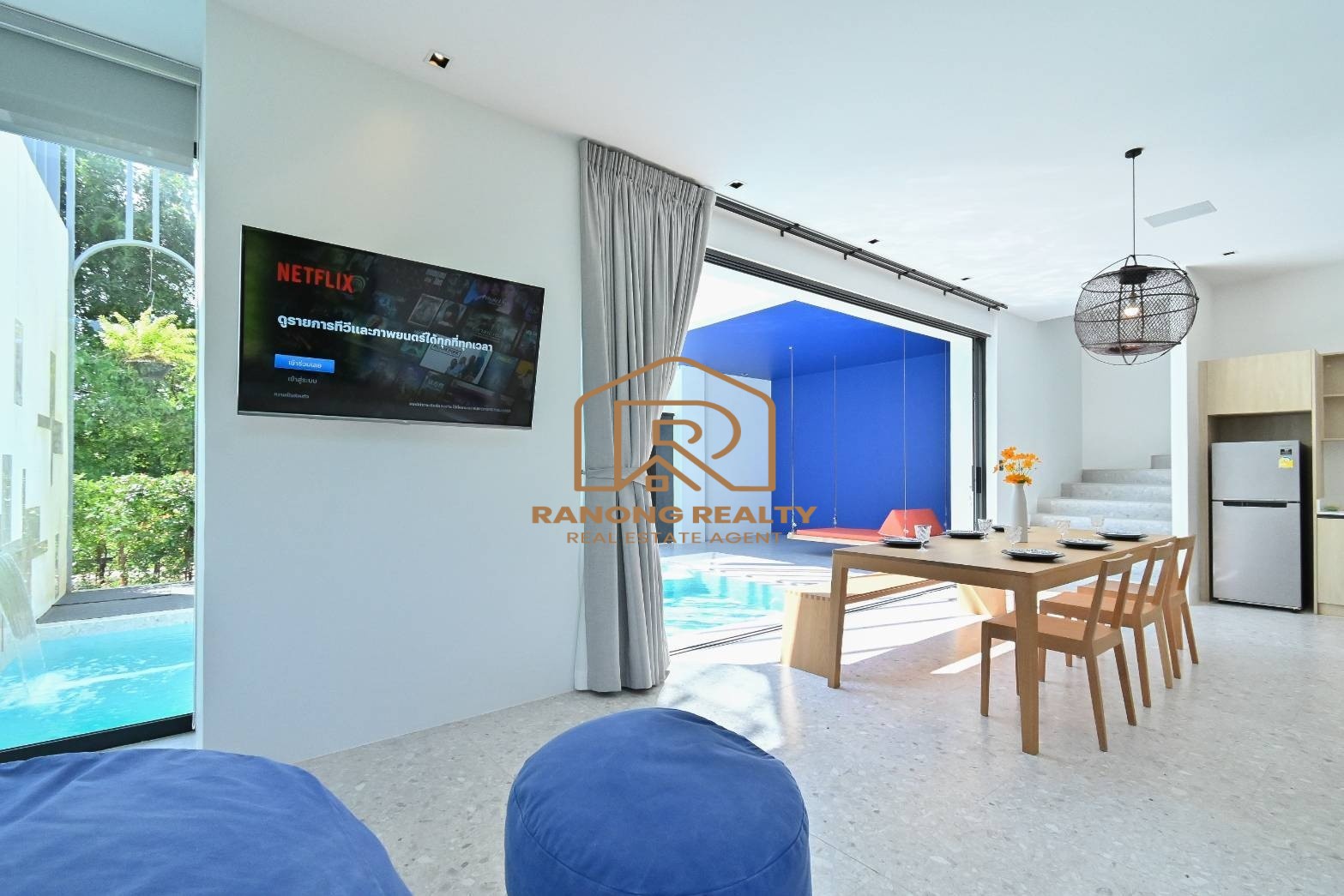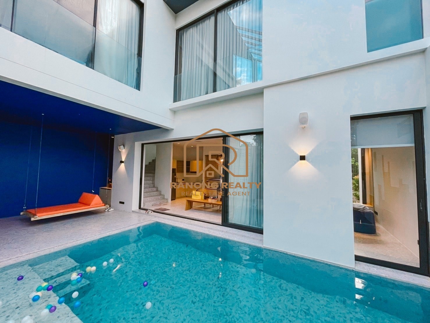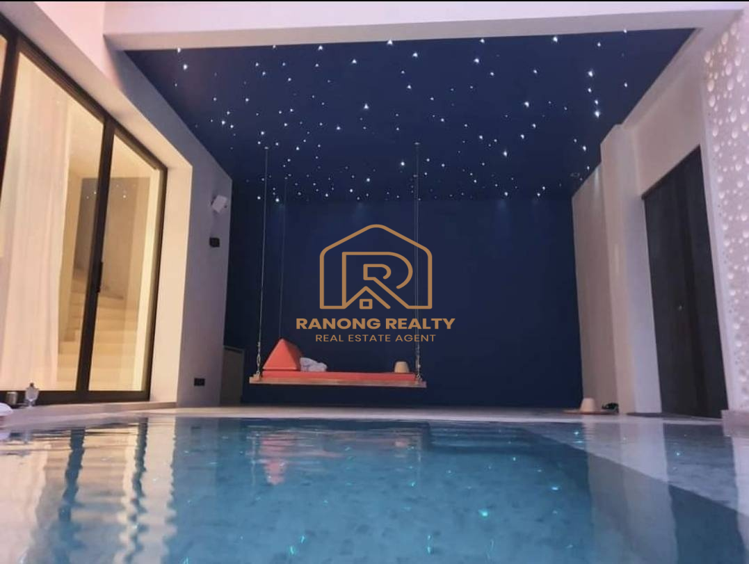 The cozy and warm private pool villa is like a family vacation home in Mai Khao area, 900 meters away from the beach, for short-term or long-term rent. The design and decoration emphasize the simplicity and use of natural materials. It will make you feel more relaxed and in touch with nature. Usage area: 200 sq.m. Each villa comprises 3 bedrooms and 4 bathrooms. The shining starlight under the pool reflected in the water as if in a dream.
