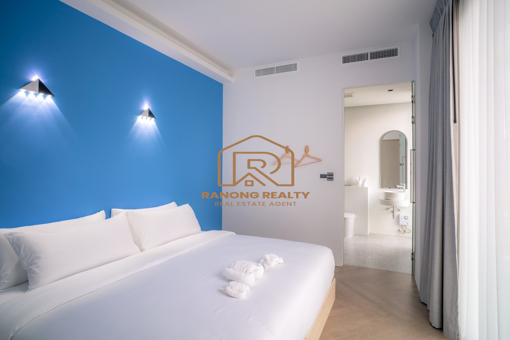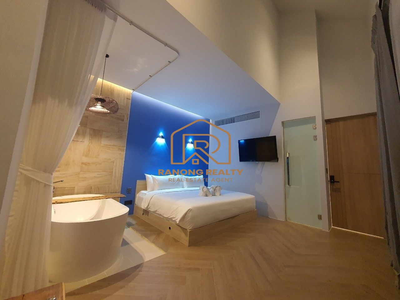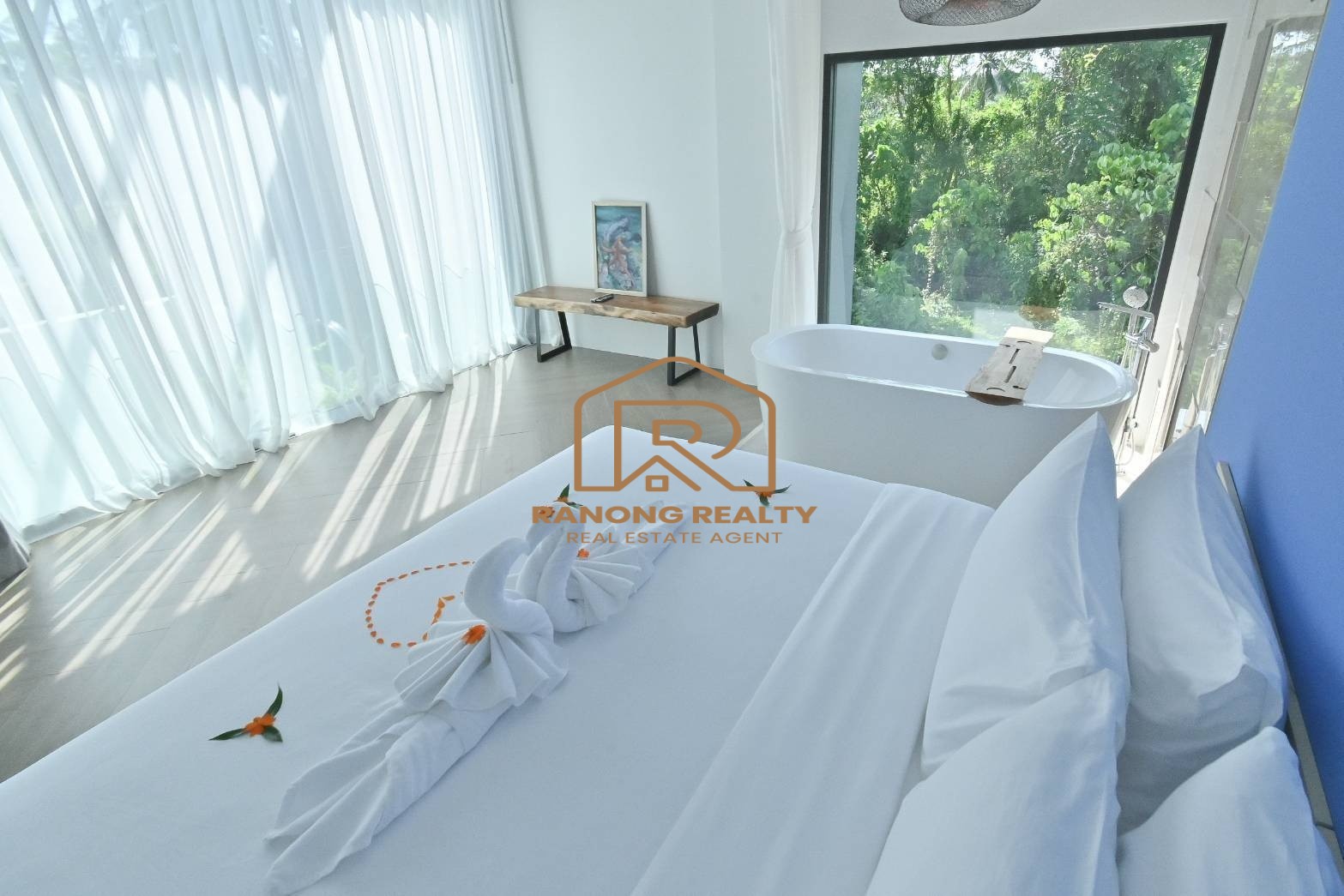 - ห้องนอนใหญ่ขนาด 39 ตารางเมตร พร้อมเตียงขนาดคิงไซส์ 7 ฟุต และห้องน้ำในตัวพร้อมอ่างอาบน้ำ