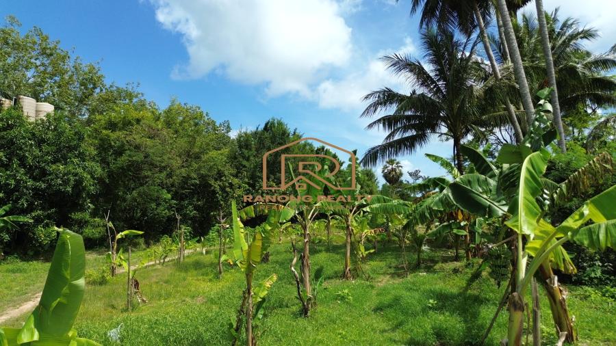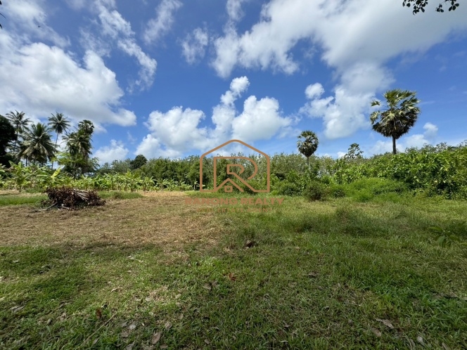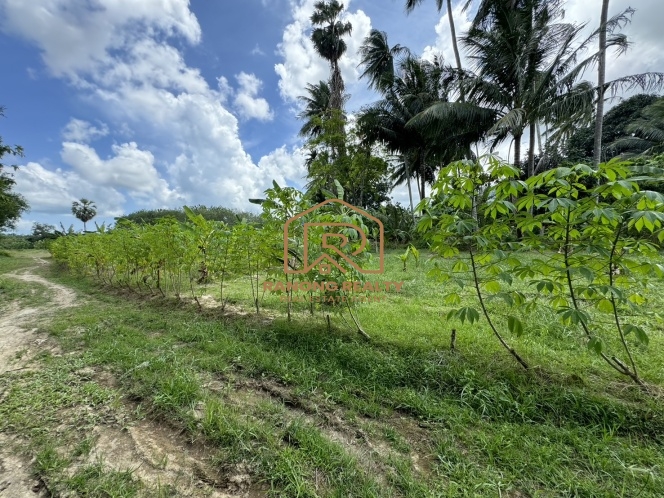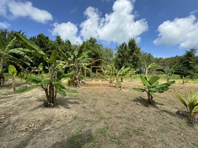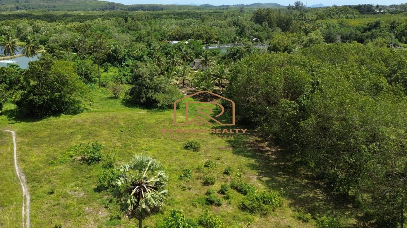 This 5-rai land in Pa Khlok, Phuket, features flat terrain with a wide frontage on a public concrete road and an 8-meter-wide dirt road running along its length. Located in Pa Khlok, Phuket, a well-equipped community with markets, shops, and tranquil surroundings, this land is ideal for building a residence or investing in property development. The land is planted with banana trees, palm trees, and cassava, offering stunning mountain views on both sides, characteristic of Pa Khlok, Phuket.
