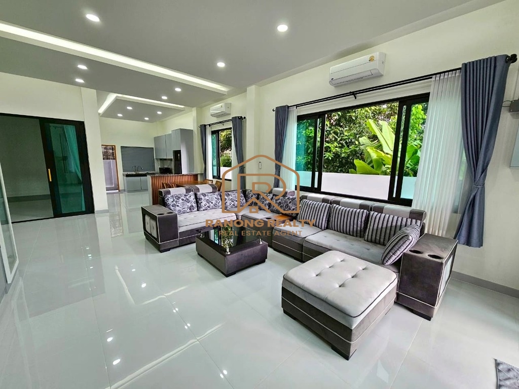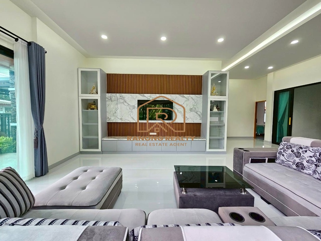 ให้เช่าบ้าน 3 ห้องนอน พร้อมเฟอร์นิเจอร์ครบครัน ในศรีสุนทร ภูเก็ต บ้านเดี่ยว 3 ห้องนอน 2 ห้องน้ำในตัว 1 ห้องน้ำแยก และ 1 ห้องเปล่า พร้อมห้องโถงกว้างขวาง ตกแต่งครบพร้อมเฟอร์นิเจอร์ครบชุด เช่น โต๊ะกินข้าว ทีวี เครื่องซักผ้า แอร์ 5 ตัว (ในห้องโถงและห้องนอนทุกห้อง) และห้องครัวพร้อมเคาน์เตอร์ เตาแก๊ส ตู้บิวท์อิน ซิงก์ล้างจาน ตู้เย็น และไมโครเวฟ เพิ่มความปลอดภัยด้วยกล้องวงจรปิด เหมาะสำหรับครอบครัวที่มองหาบ้านเช่าที่สะดวกสบายและบรรยากาศเงียบสงบในย่านศรีสุนทร ภูเก็ต