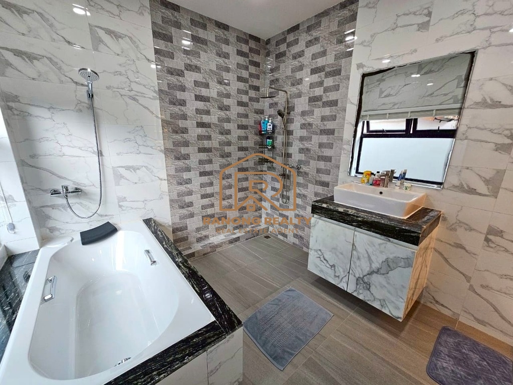 3-Bedroom Fully Furnished House for Rent in Si Sunthon, Phuket Spacious 3-bedroom house with 2 ensuite bathrooms, 1 separate bathroom, and 1 empty room. The house includes a large living area fully furnished with a dining table, TV, washing machine, and 5 air conditioners (in the living area and all bedrooms). The kitchen is equipped with a countertop, gas stove, built-in cabinets, sink, refrigerator, and microwave. Additionally, the property features CCTV cameras for extra security. Perfect for families seeking a comfortable and peaceful home in the Si Sunthon area of Phuket.