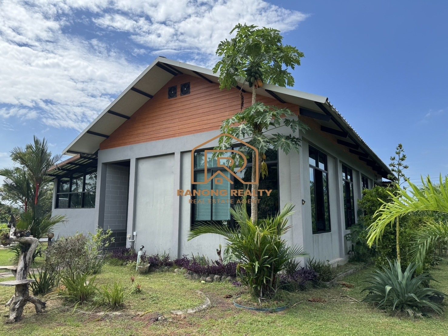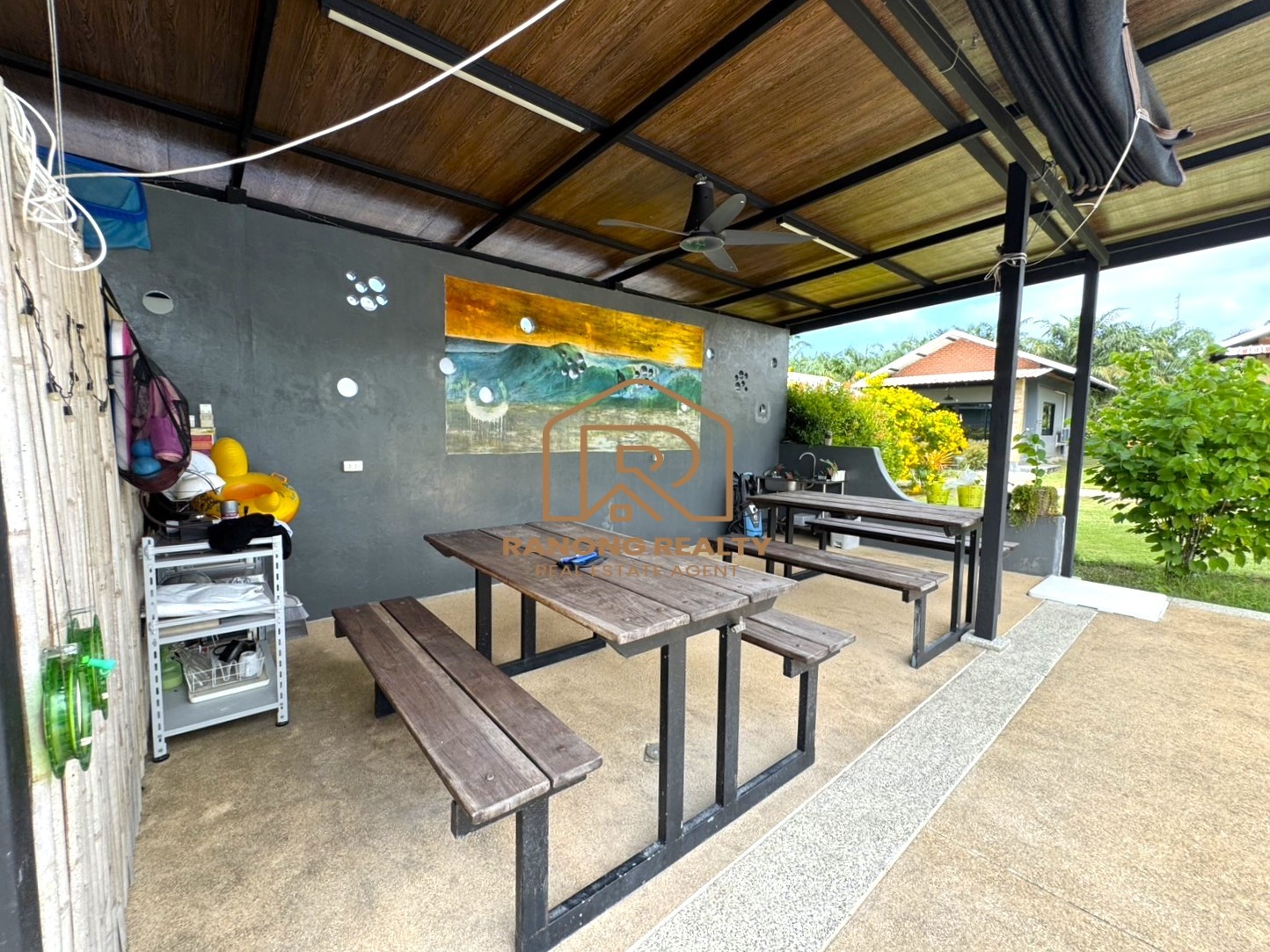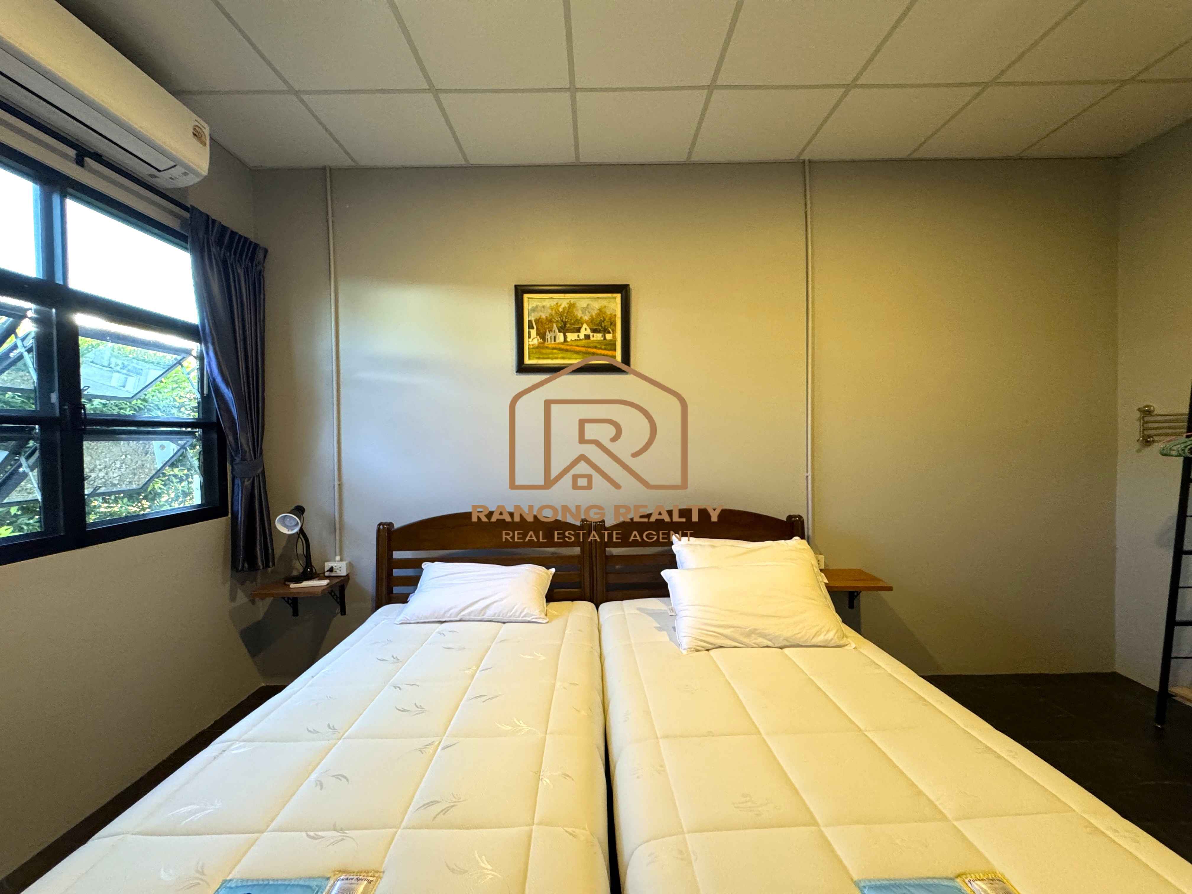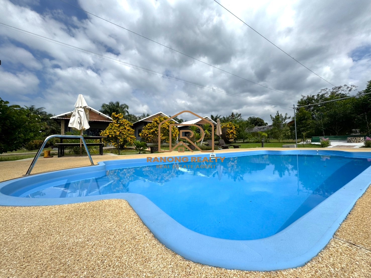 The property is surrounded by a vegetable and fruit garden, providing a serene and eco-friendly atmosphere. It includes 2 family bungalows with 2 bedrooms each and 7 single-bedroom bungalows. The highlight of the resort is its swimming pool, beautifully set amidst the expansive garden, and the only swimming pool in the area, offering a unique and private retreat for guests. Front of the bungalow features an additional kitchen counter, fully equippedใ Nicely set up and ready to use, including a microwave, toaster, electric stove, and sink. Perfect for preparing light meals or a relaxing breakfast outdoors. This added convenience makes your stay even more comfortable and complete.