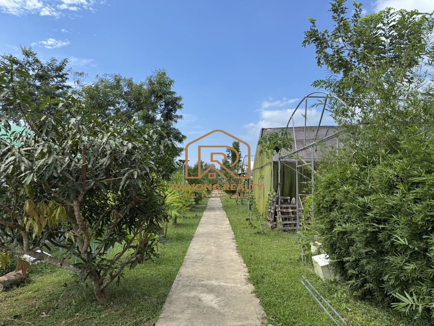 รีสอร์ทยังรายล้อมด้วยสวนผักและผลไม้ที่สร้างความร่มรื่นและเป็นแหล่งอาหารสดใหม่ ภายในประกอบด้วยบังกะโลสำหรับครอบครัวขนาด 2 ห้องนอน จำนวน 2 หลัง และบังกะโลหลังเดี่ยวขนาด 1 ห้องนอน จำนวน 7 หลัง ไฮไลต์สำคัญคือ สระว่ายน้ำที่ตั้งอยู่ท่ามกลางพื้นที่สวนอันกว้างขวาง และเป็นสระว่ายน้ำแห่งเดียวในพื้นที่ มอบความเป็นส่วนตัวและประสบการณ์พักผ่อนสุดพิเศษให้กับผู้มาเยือน ด้านหน้าบังกะโลมีเคาน์เตอร์ครัว พร้อมอุปกรณ์ครบครัน ตกแต่งพร้อมใช้งาน ประกอบด้วยไมโครเวฟ เตาปิ้งขนมปัง เตาไฟฟ้า และซิงค์ล้างจาน เหมาะสำหรับทำอาหารง่าย ๆ หรือเตรียมมื้อเช้าสบาย ๆ ภายนอกที่พัก เพิ่มความสะดวกสบายให้การพักผ่อนของคุณสมบูรณ์แบบยิ่งขึ้น