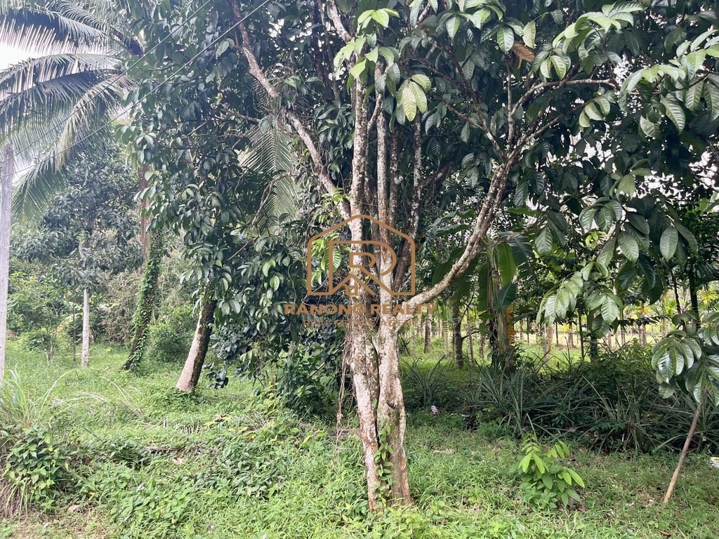 A beautiful 1-rai fruit orchard land offering tranquility and natural surroundings—perfect for those seeking a private residence amid nature. The property features various fruit trees, including jackfruit, longkong, coconut, and mango, providing shade and seasonal harvests. The land is flat and easy to develop, with an approximate frontage of 15 metersand a depth of 120 meters, allowing flexible planning for a house or additional garden space. Ideally suited for building a private home or a small homestay for those who appreciate peace and natural living.