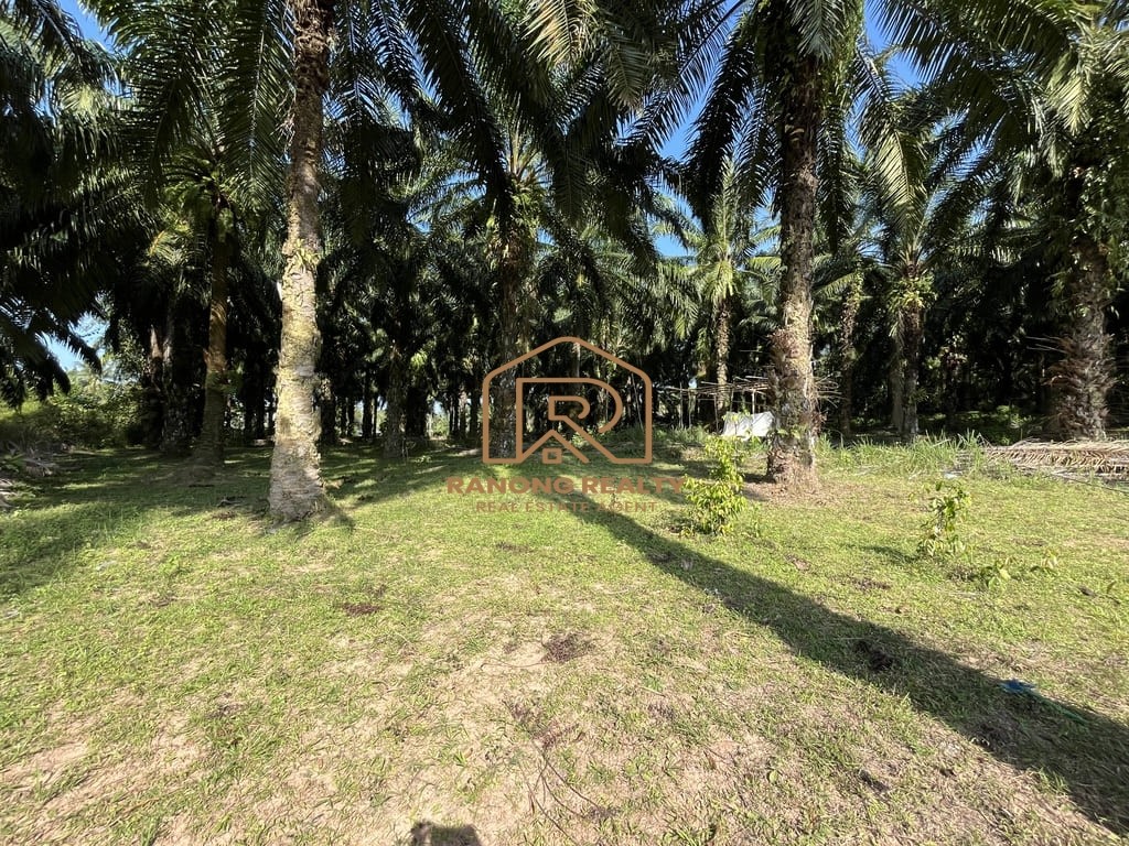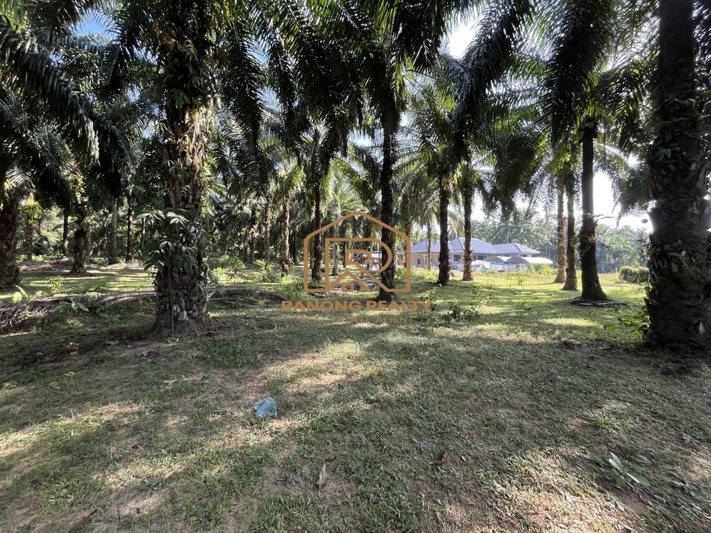 This palm plantation land for sale offers a total area of over 2 rai, located in a peaceful setting with beautiful mountain views. The environment feels open, quiet, and surrounded by nature, making it ideal for building a private residence, garden home, or future investment project.
