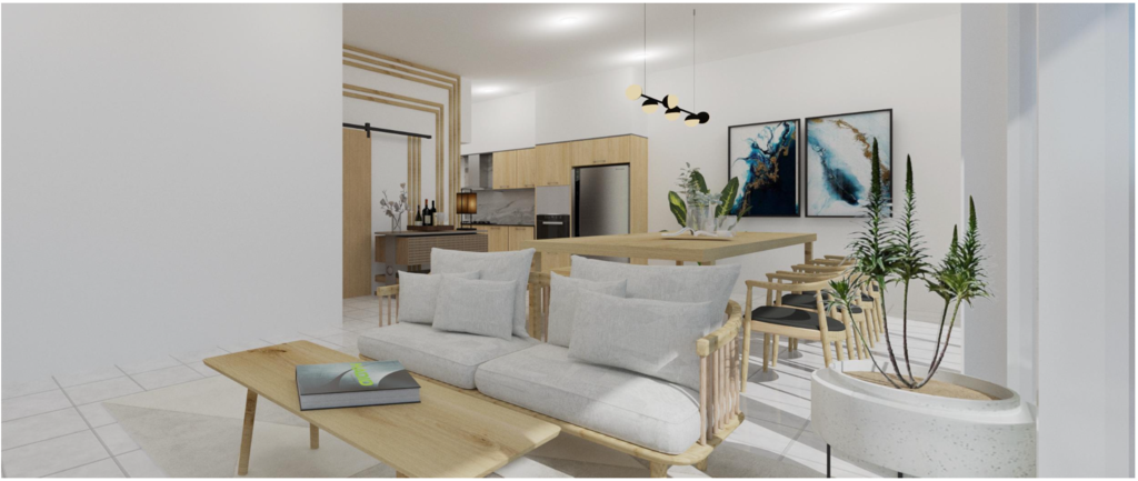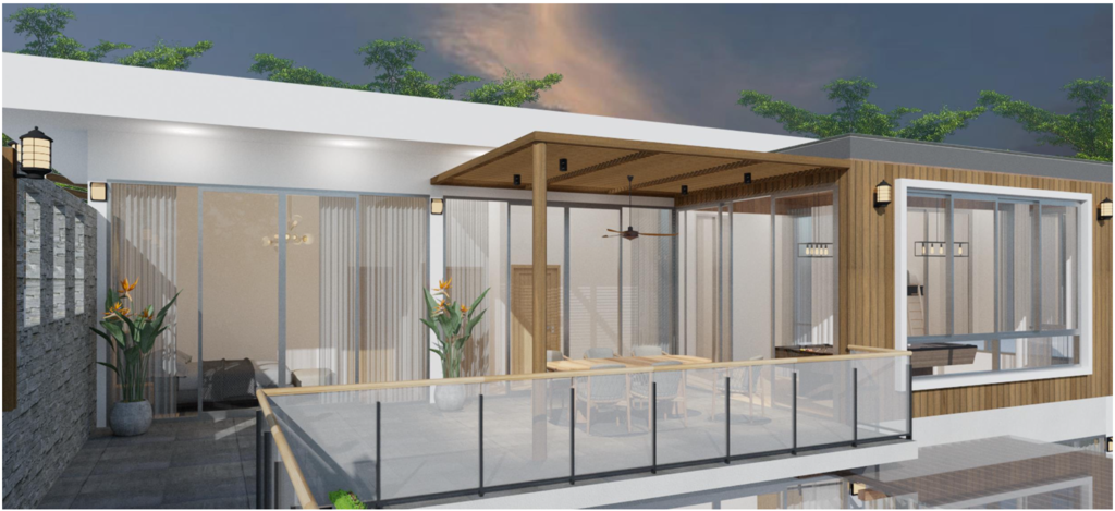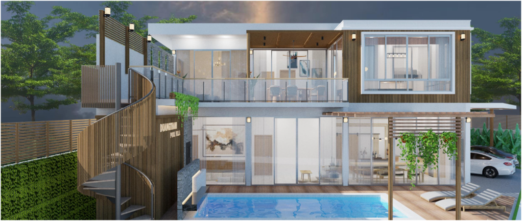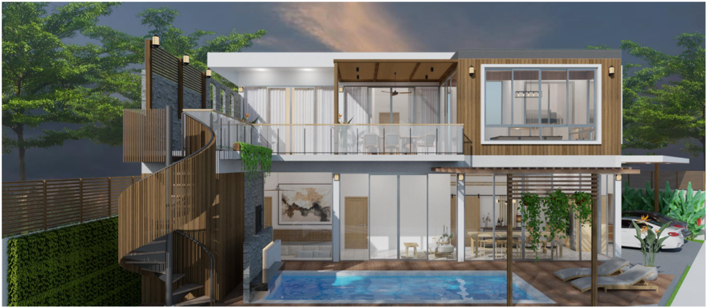ตั้งอยู่บนที่ดินขนาด 77 ตารางวา พื้นที่ใช้สอยรวม 350 ตารางเมตร มีที่จอดรถ 2 คัน และมี สระว่ายน้ำระบบเกลือพร้อมน้ำตกขนาด 3.5 × 7 เมตร เพิ่มความเป็นส่วนตัวและบรรยากาศพักผ่อนแบบพูลวิลล่าในบ้านของคุณเอง