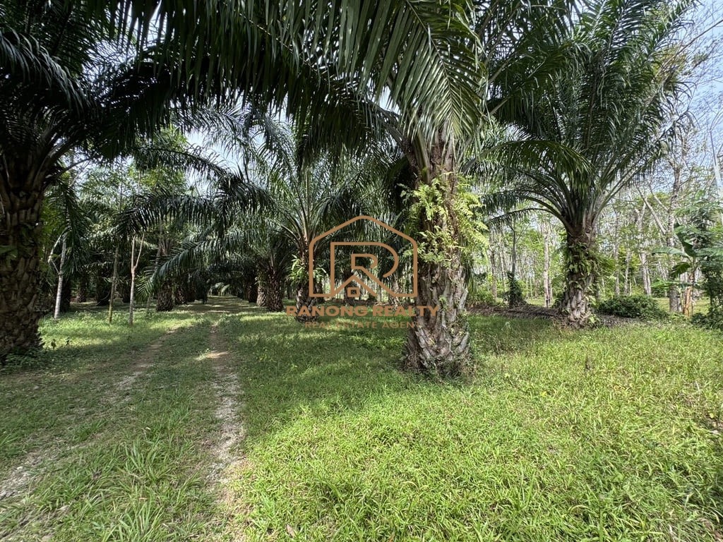 This land for sale offers a peaceful natural setting, ideal for buyers seeking a garden-style property for living or long-term investment. The land is a palm plantation approximately 5–6 years old and is flat, making it easy to develop and plan for future use.